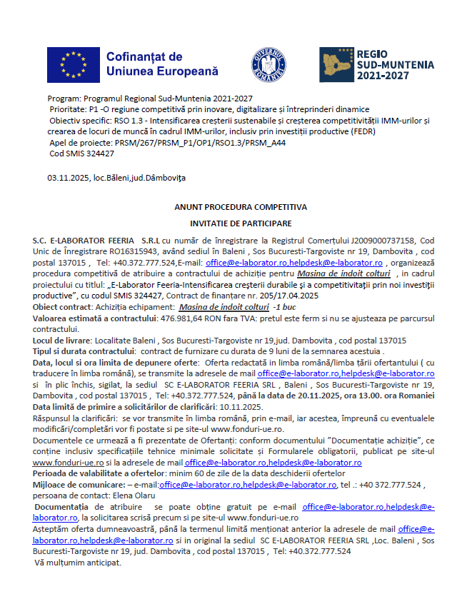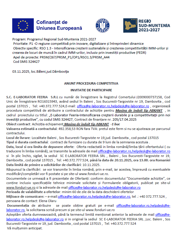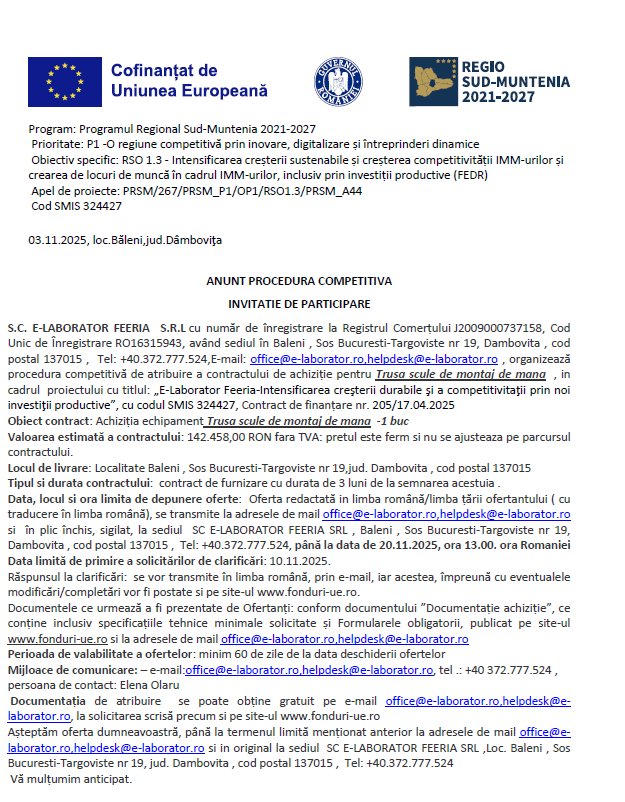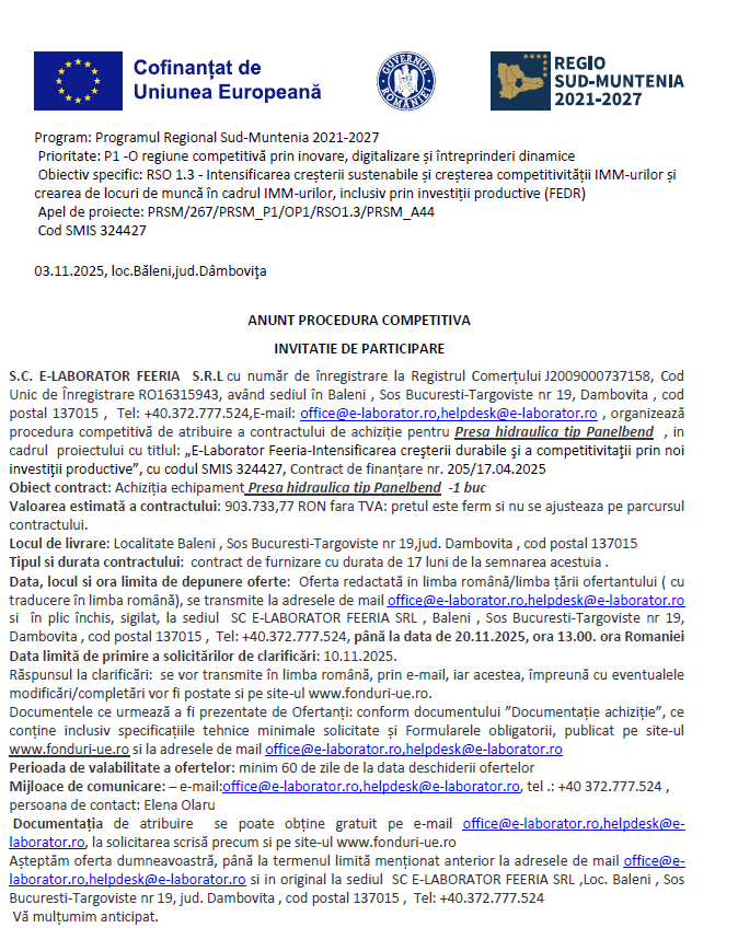 Anunt procedura competitiva_03.11.2025_Presa hidraulica tip Panelbend