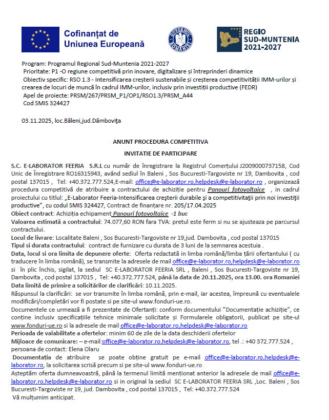Anunt procedura competitiva_03.11.2025_Panouri fotovoltaice